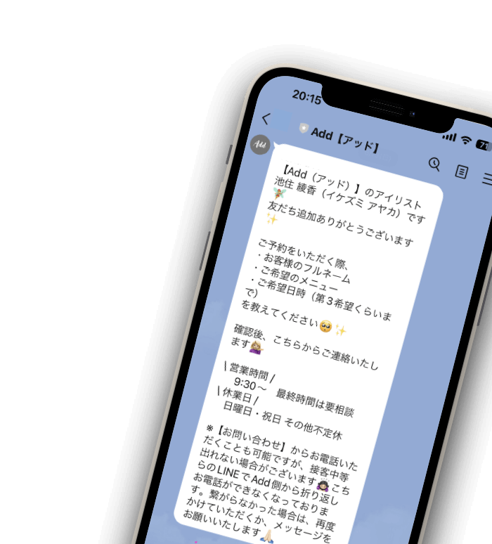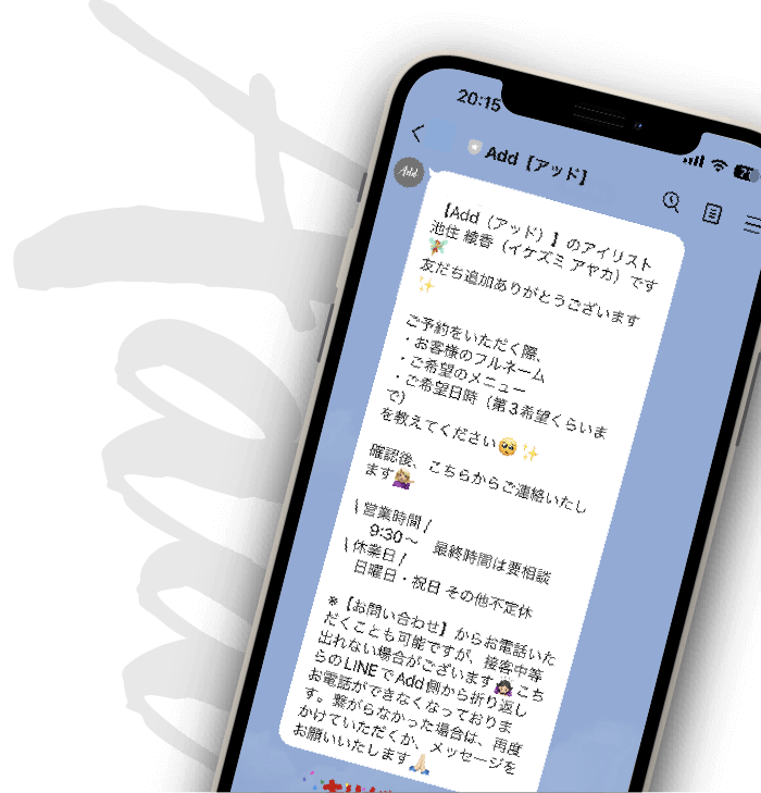 ご都合の良い日時に合わせてご来店日を決めさせていただきます。 LINEで予約する -